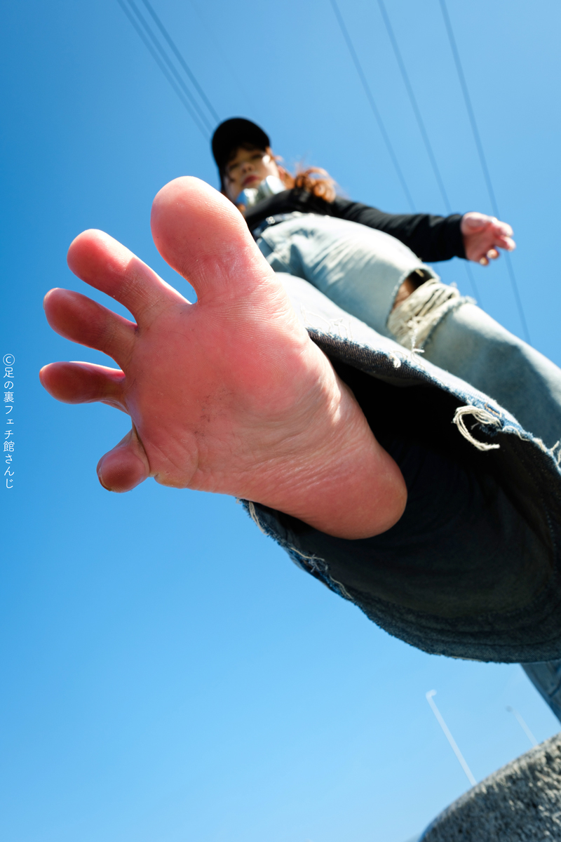青空にオレンジ色の足裏のコントラストが素晴らしいです。