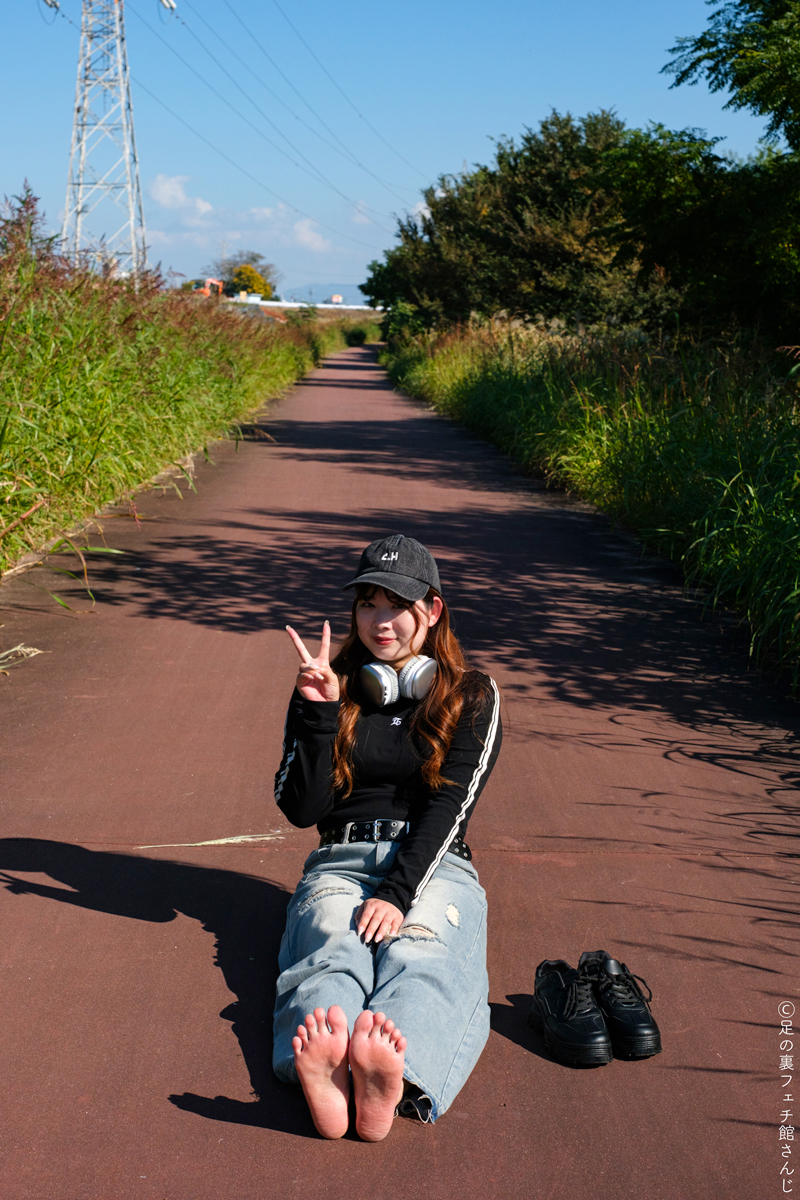 足のサイズは25.0cm、いろんな角度から見てやや人差し指が長いのでギリギリのギリシャ型。爪は四角を保っていて形が綺麗。この日はピンク色のペディキュアをしていました。
